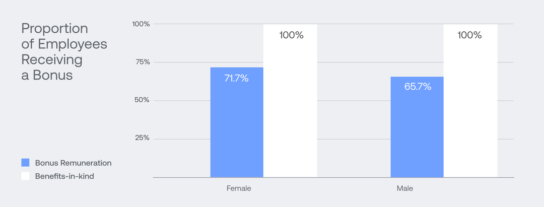 The Median Bonus Remuneration Gap of 9.69% is primarily driven by a higher representation of male employees within the upper quartile despite the overall bonus attainment amongst female employees being higher at 71.79%.