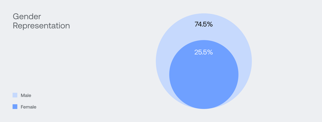 Additionally male employees are overrepresented within the mean calculation when looking at seniority across the business: Director - 100%, Lead - 91.67%, Senior - 74.29%, Mid - 71.79% and Junior - 71.21%.