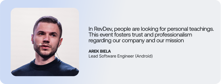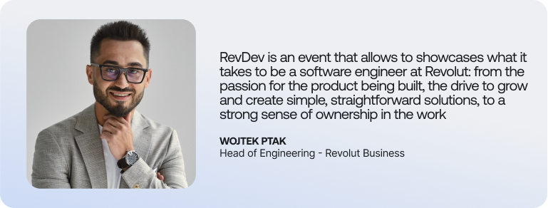 Our Head of Engineering for Revolut Business, Wojtek Ptak, is a firm believer in open and accessible knowledge for all. That's why he greatly values initiatives like RevDev, where access to information and the creation of a community that shares experiences and knowledge make it possible to build great projects and bring big ideas to life.