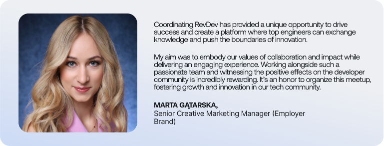 As Marta Gątarska stepped into the role of RevDev's coordinator in 2023, she reflected on her journey: