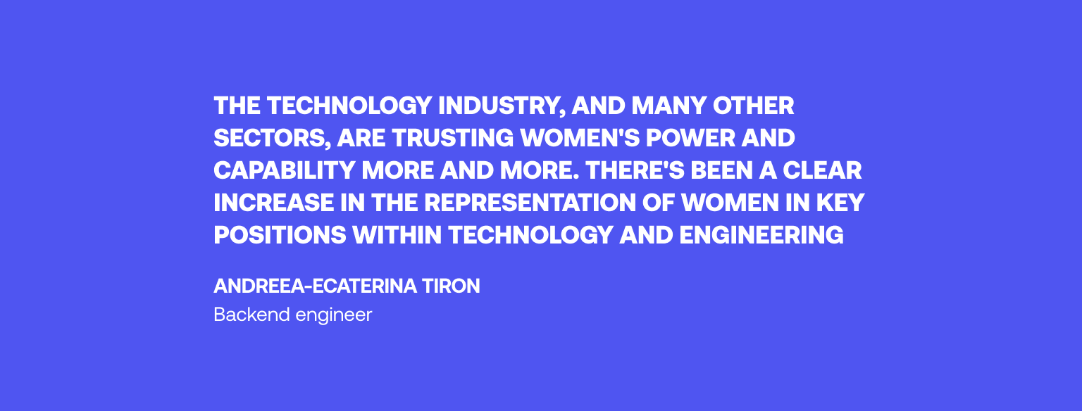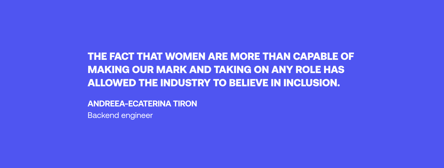 To celebrate Women's History Month, we're delving into the world of female engineers, and their journey in the tech industry. We sat down with Andreea-Ecaterina Tiron, Backend Engineer, to discuss her career, and her insights on women's contributions to the tech industry.