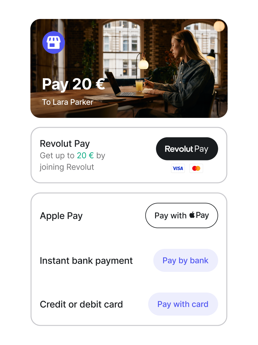 Revolut Pro offers simple and ready-to-use in-person and online payment options you can use to get paid from customers around the world, 24/7.