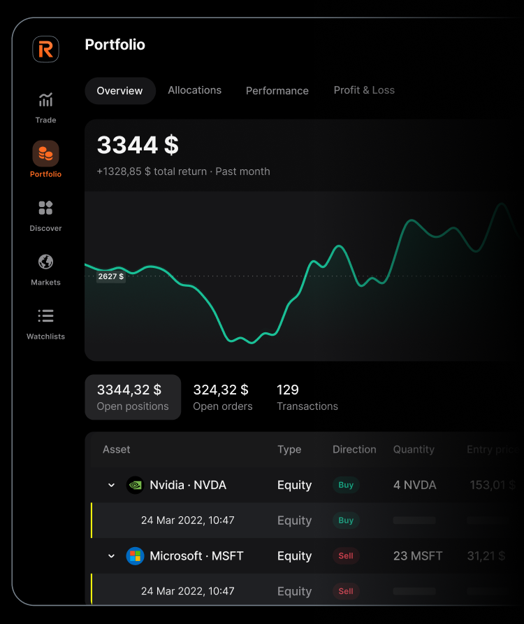 Investing in stocks carries risks and may not be suitable for all investors. Stock prices can be volatile and are influenced by market conditions, economic factors, and company performance. Past performance is not indicative of future results. There is a risk of losing some or all of your invested capital. Dividends, returns, and profits are not guaranteed. Fractional shares do not benefit from voting rights, have transferability limitations, and may be subject to additional risks like custody and liquidity risks. When investing in securities listed in a foreign currency (for example, USD), you may incur a fee when exchanging your money. Your final return will also depend on the currency conversion rate, which could reduce your returns if you convert them back into your desired currency. Please assess your financial situation carefully and consider seeking independent advice before investing. We do not provide investment advice. The referenced companies, including performance trends and prices of the respective financial instruments, are shown for illustrative and informational purposes only.