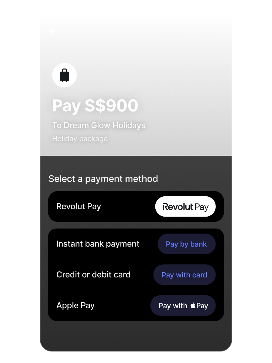 Once your customers have made the payment, the funds will be available in your Merchant account within 24 hours. When the money settles, you can withdraw it instantly into your Revolut Business account without any fees. Learn more.