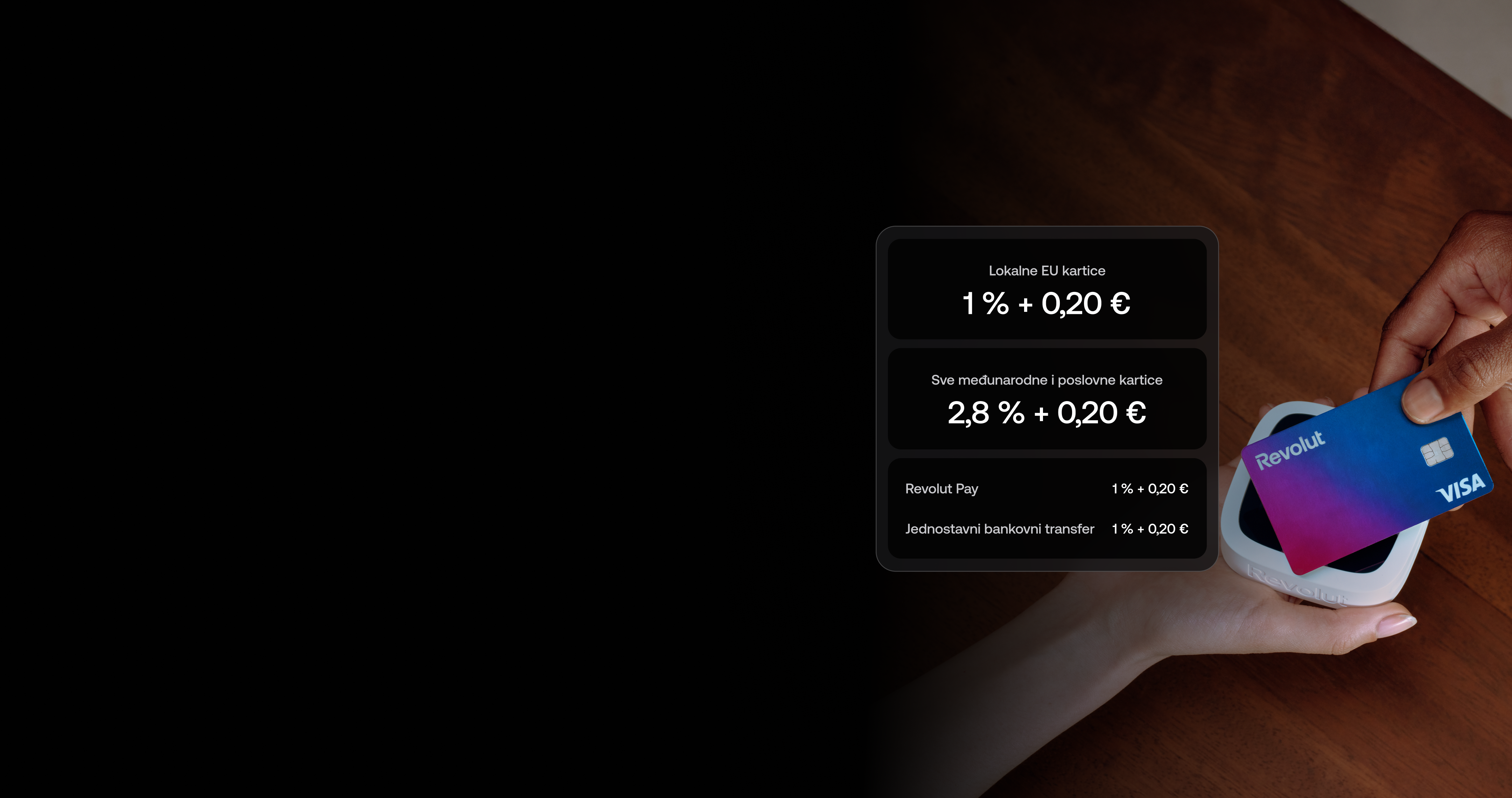 Primjenjuju se naknade i Uvjeti i odredbe za Revolut Terminal, POS i pristupnik za plaćanje.