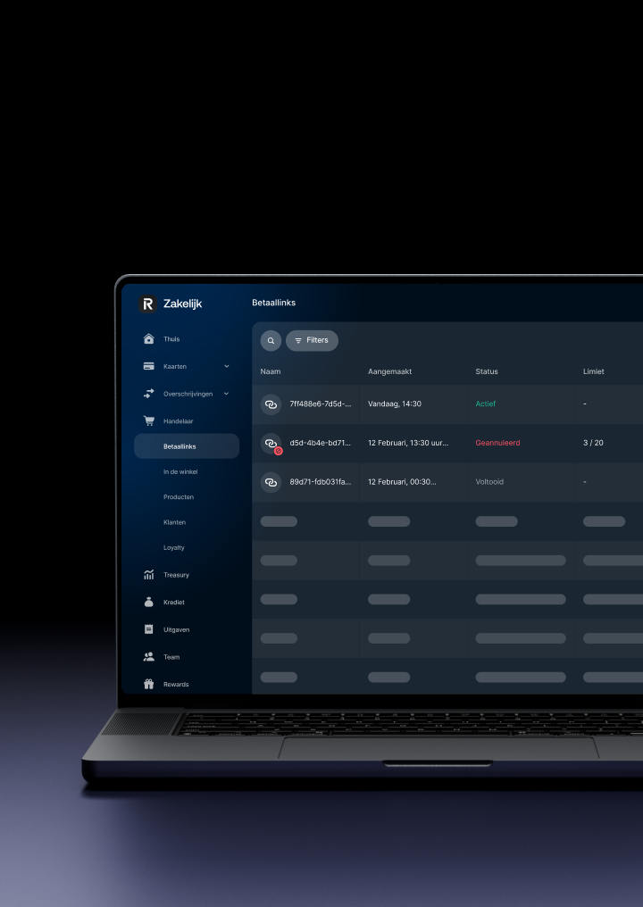 - Betaallinks — geen website, geen probleem. Maak een aangepaste link om in enkele seconden kaartbetalingen aan te vragen via elk kanaal. Bied klanten vervolgens de optie om te betalen met grote kaarten, digitale wallets, automatische incasso en Revolut Pay.