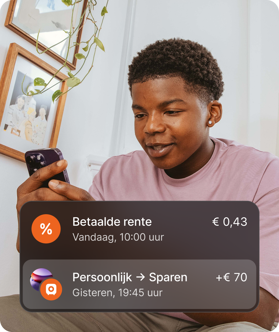 Van hun eerste telefoontje tot hun volgende doel: het spaargeld van je kind ondersteunt de belangrijke momenten. Met flexibele opnames en realtime zichtbaarheid kunnen ze doelgericht sparen - en met vertrouwen uitgeven.